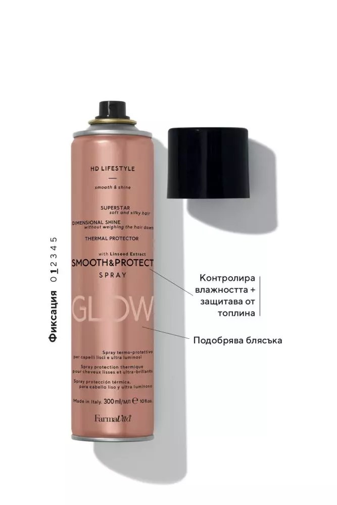 Изгладащ и защитаващ спрей. Предпазва косата от увреждане от топлина, причинени от пресата, машата и сешоара.